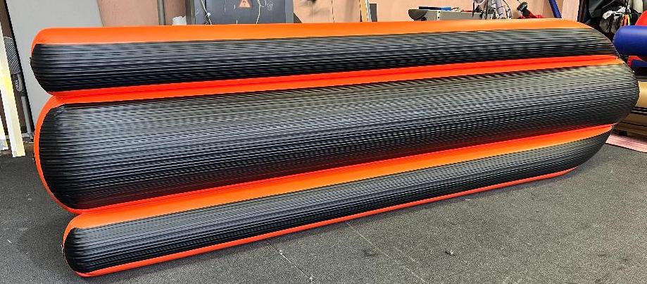 Нижняя часть баллонов дополнена привальным брусом и еще одним слоем ткани ПВХ, что защищает их от случайных повреждений и быстрого истирания при контакте со снегом или берегом.